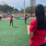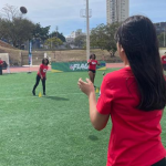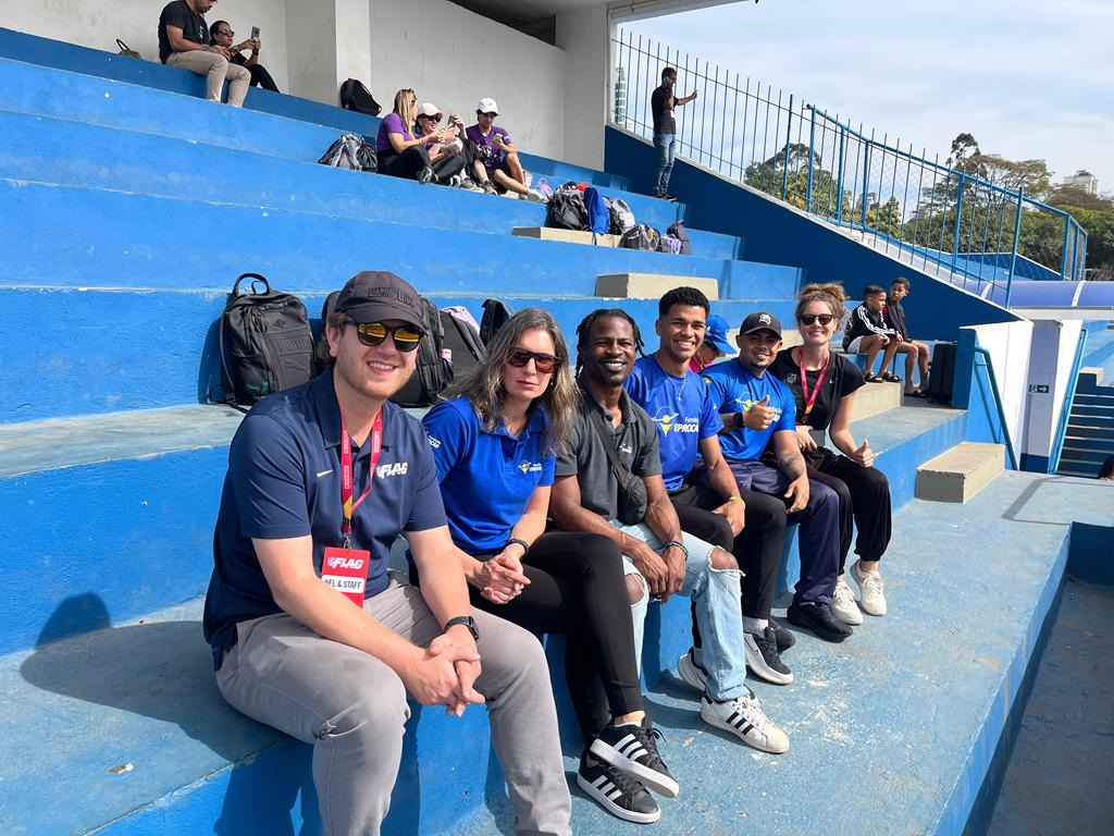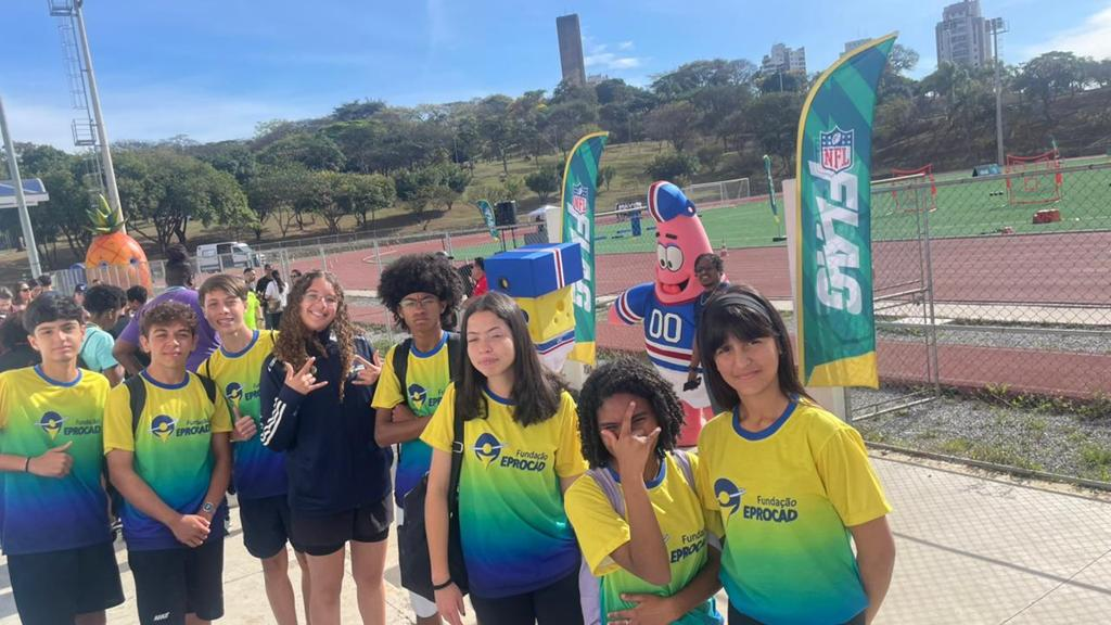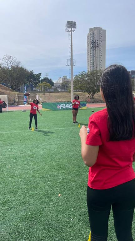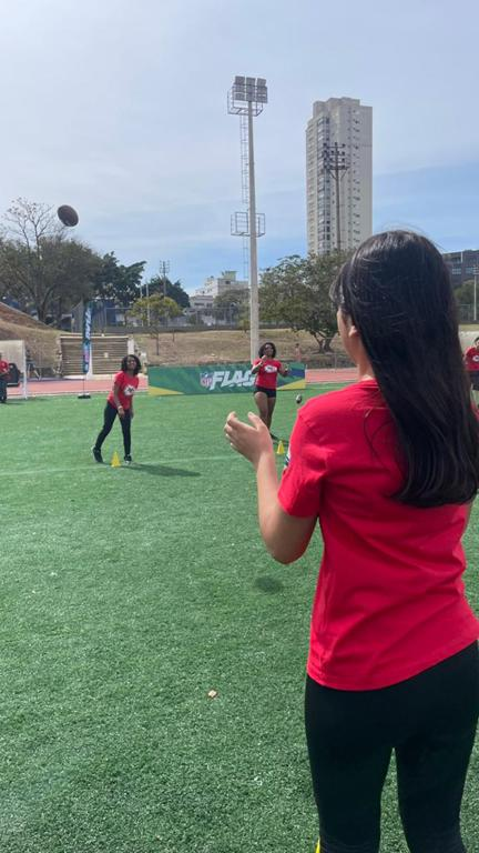 Durante a atividade, nossos jovens tiveram a oportunidade de conhecer de perto a modalidade flag football da NFL, explorando habilidades, técnicas e valores que o esporte carrega.