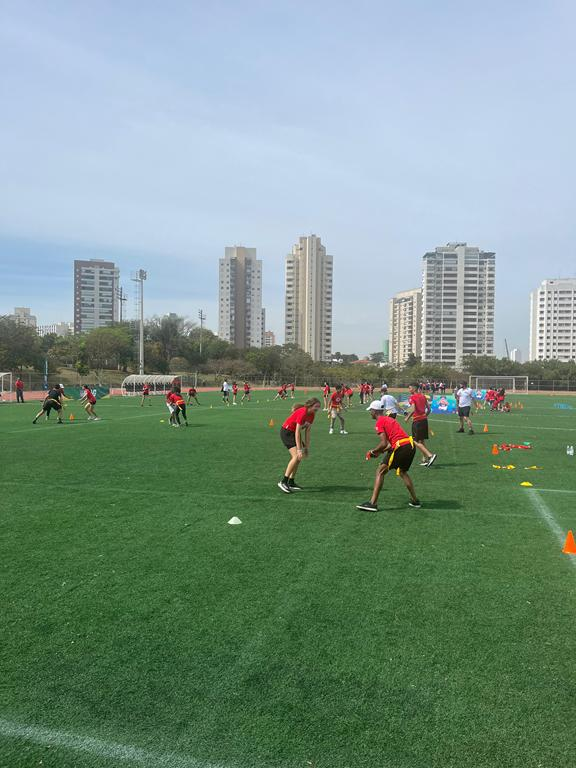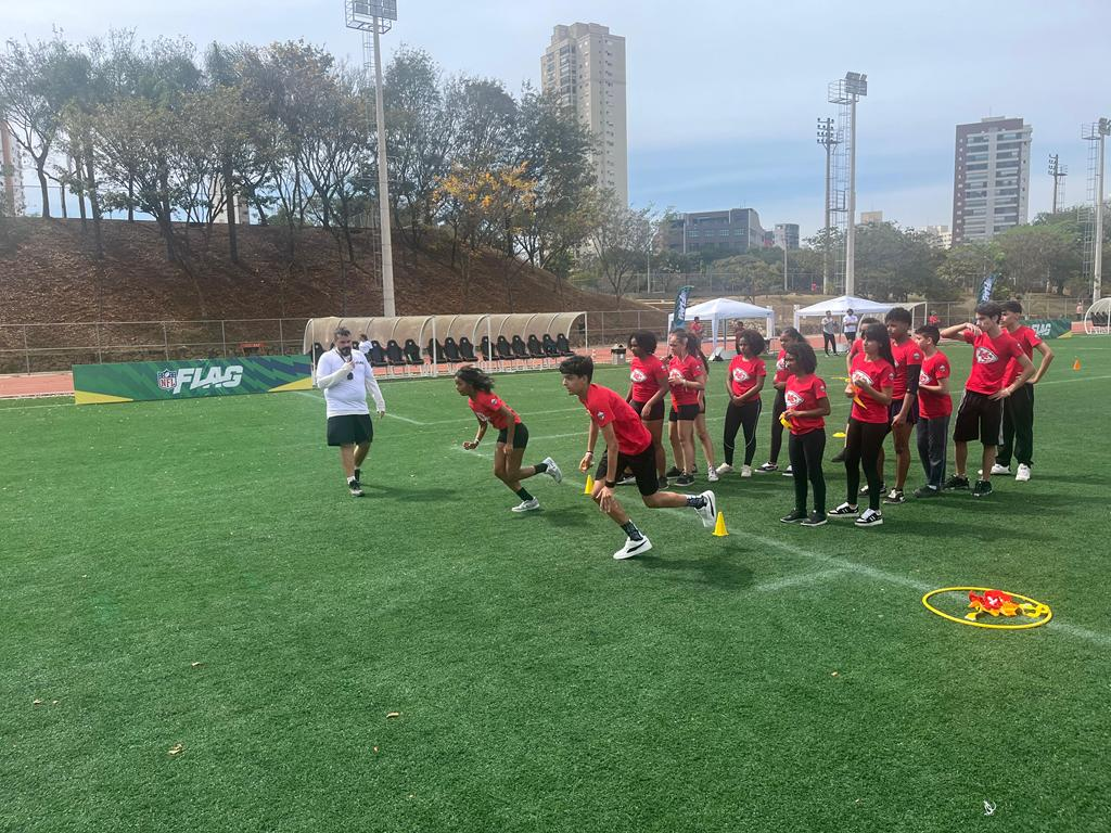 Participamos de uma clínica esportiva liderada pelo time Kansas City Chiefs, conhecido mundialmente pela sua franquia no Futebol Americano. O encontro aconteceu no Parque CERET, em São Paulo, e foi marcado por muita energia e aprendizado.