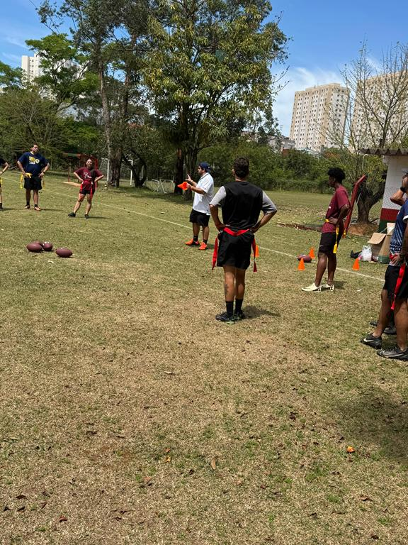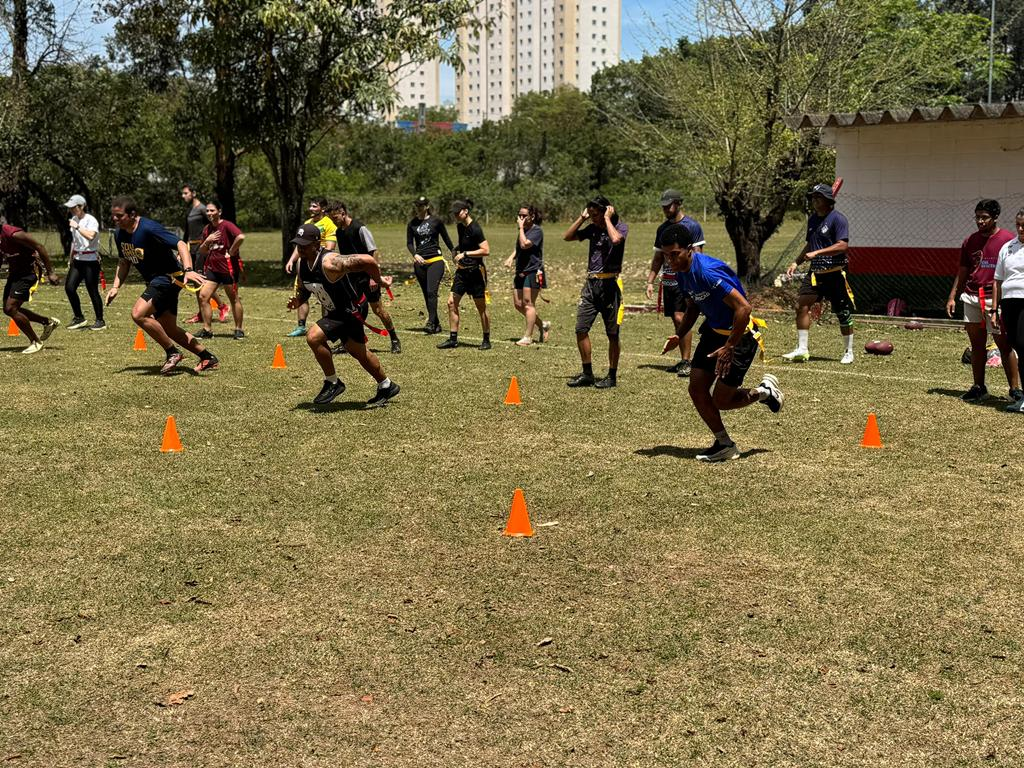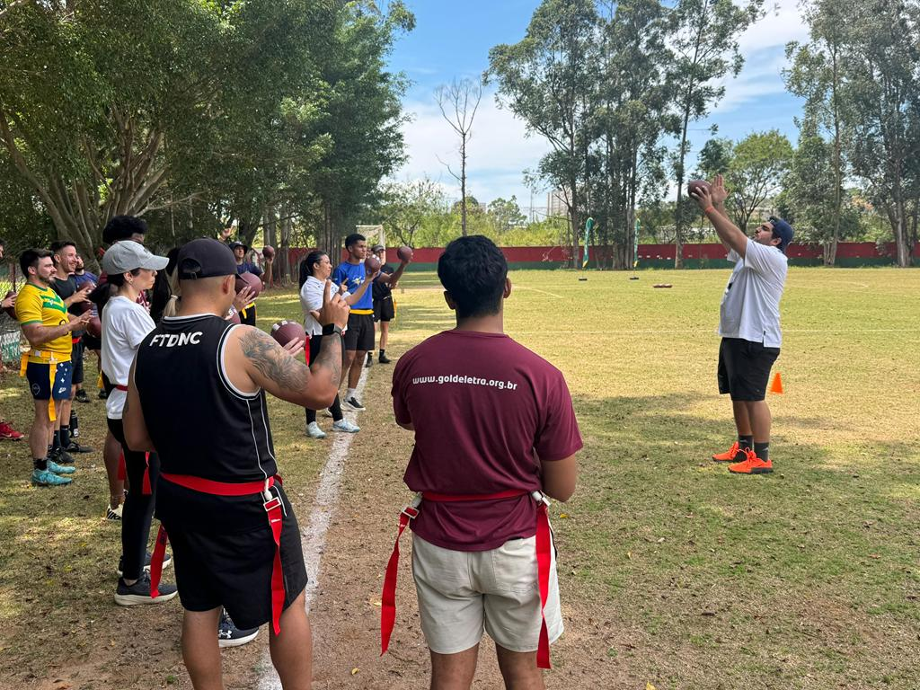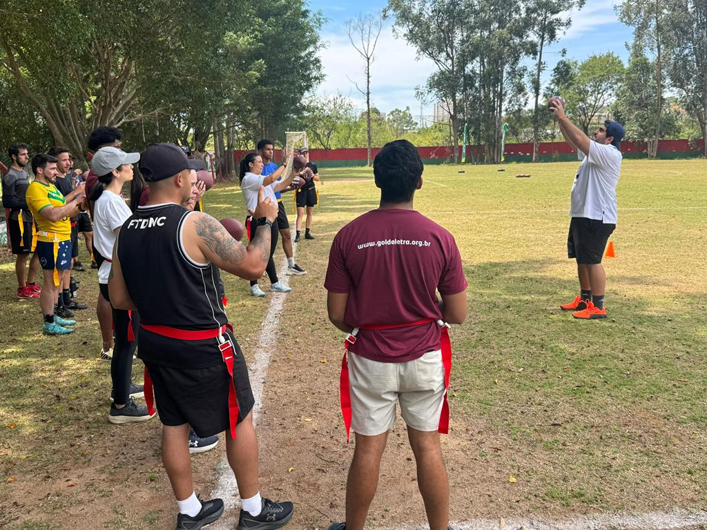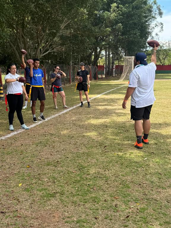 Nossa equipe viveu uma experiência incrível na capacitação de iniciação ao flag football, conduzida pelo professor Lucas Rossetti, no CT da Portuguesa em São Paulo. Foi um momento de muito aprendizado, troca e novas possibilidades para fortalecer ainda mais o esporte.