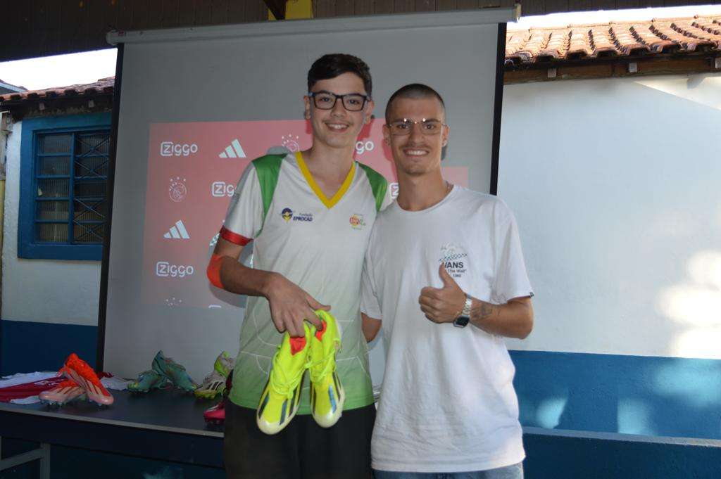 E para deixar tudo ainda mais especial, eles também doaram algumas chuteiras para os nossos educandos, um gesto que representa incentivo, carinho e oportunidades para quem sonha alto.