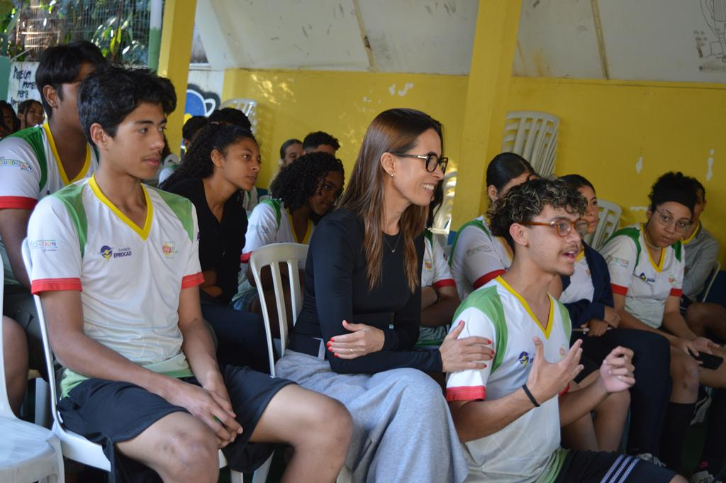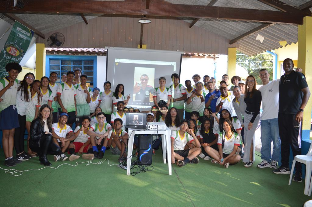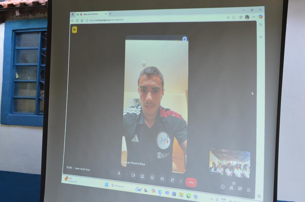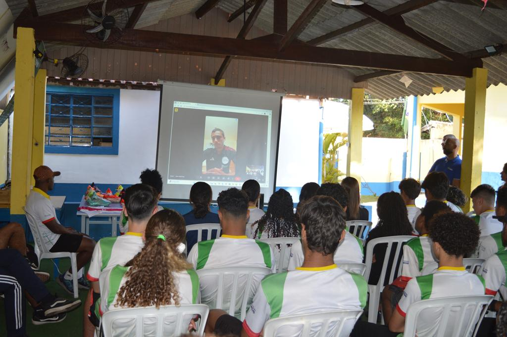 Durante o encontro, nossos educandos participaram de um bate-papo online com o próprio Lucas Rosa. Ele compartilhou sua trajetória no futebol, falou sobre os desafios e conquistas da carreira e destacou o quanto o esporte foi fundamental na sua formação.