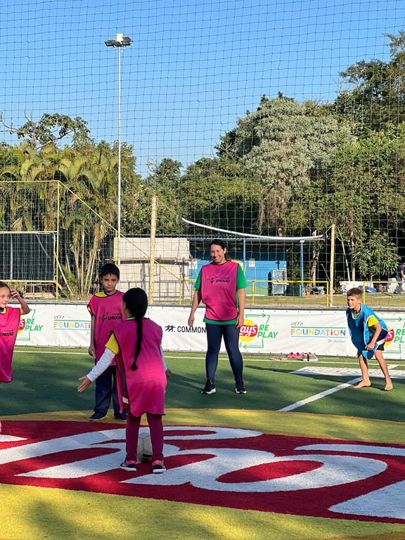 Eles puderam conhecer de perto nossas atividades, interagir com as crianças no Futebol3, participar de uma gincana de coleta seletiva e ainda contribuíram com a pintura da nossa praça, deixando o espaço mais colorido e acolhedor.